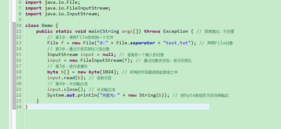 字节流主要操作的是byte类型数据,以byte数组为准,主要操作类是InputStream、OutputStream