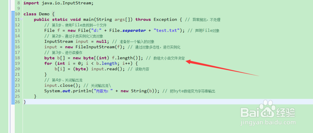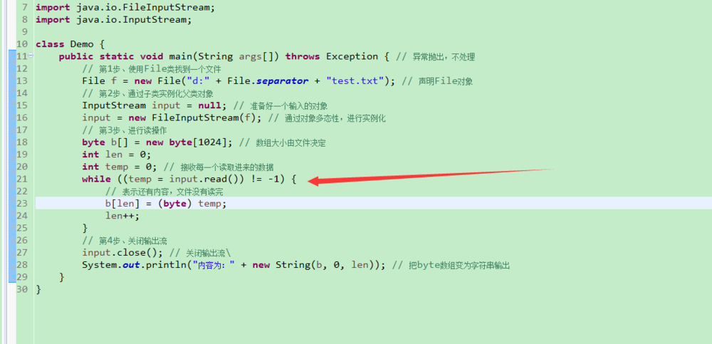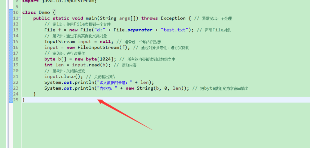 InputStream是字节输入流,可以通过这个类把文件的内容读取进来,inputStream也是抽象类,如果想使用此类必须用子类实现,比如FileInputStream