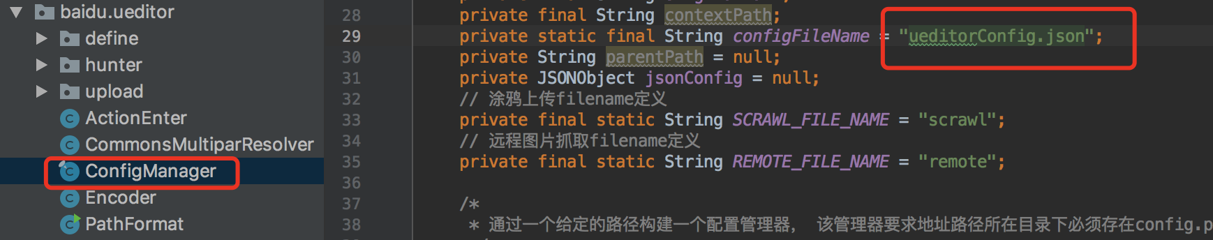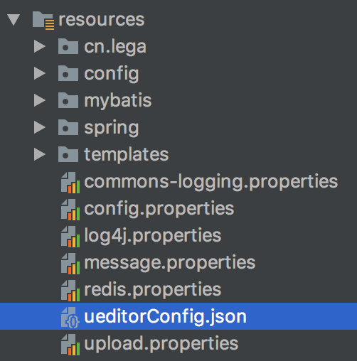 放到java项目的resource目录下,在这里是ueditorConfig.json