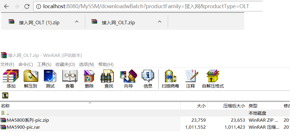 在浏览器中输入:http://localhost:8080/MySSM/downloadwBatch?productFamily=接入网&productType=OLT