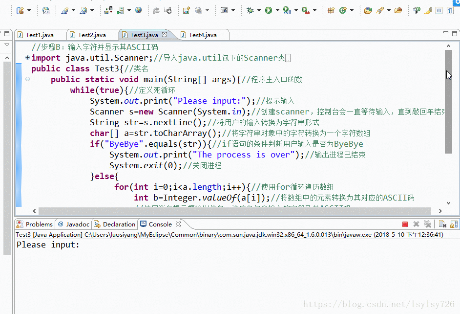 if(str.equals("ByeBye")){//if语句的条件判断用户输入是否为ByeBye