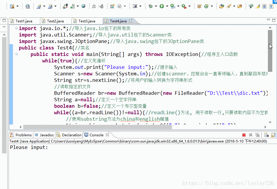 Scanner s=new Scanner(System.in);//创建scanner,控制台会一直等待输入,直到敲回车结束
