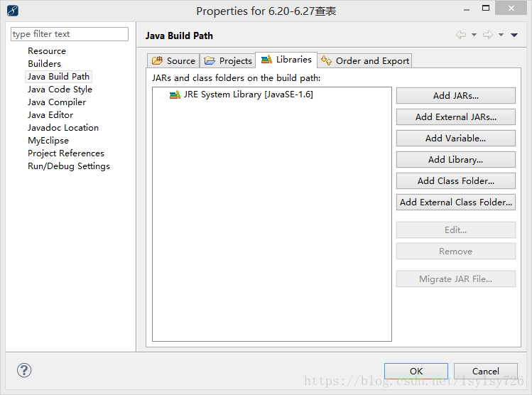 3)右键点击Java Project→Build Path→Configure Build Path后进到如下界面: