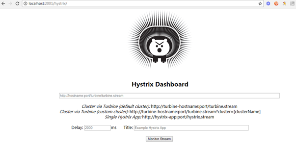 1.4启动应用,然后再浏览器中输入http://localhost:2001/hystrix可以看到如下界面