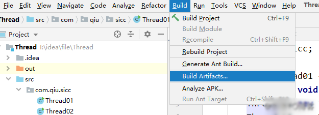 3、返回idea的编辑界面后,Build=>Build Artifacts