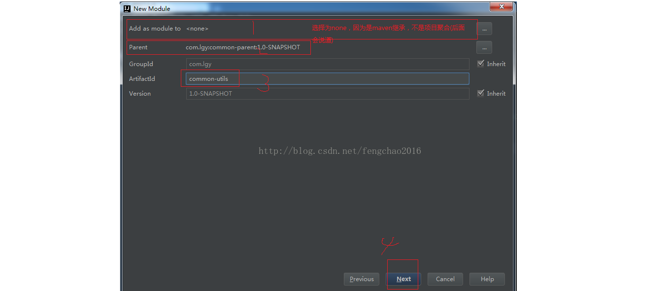 类似于创建子项目,当然你有可以不继承parent。在此不再详述。