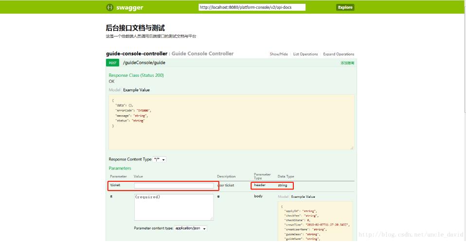 修改swagger的配置文件如上即能满足swagger中所有的接口默认都加上ticket参数,非必填如下图: