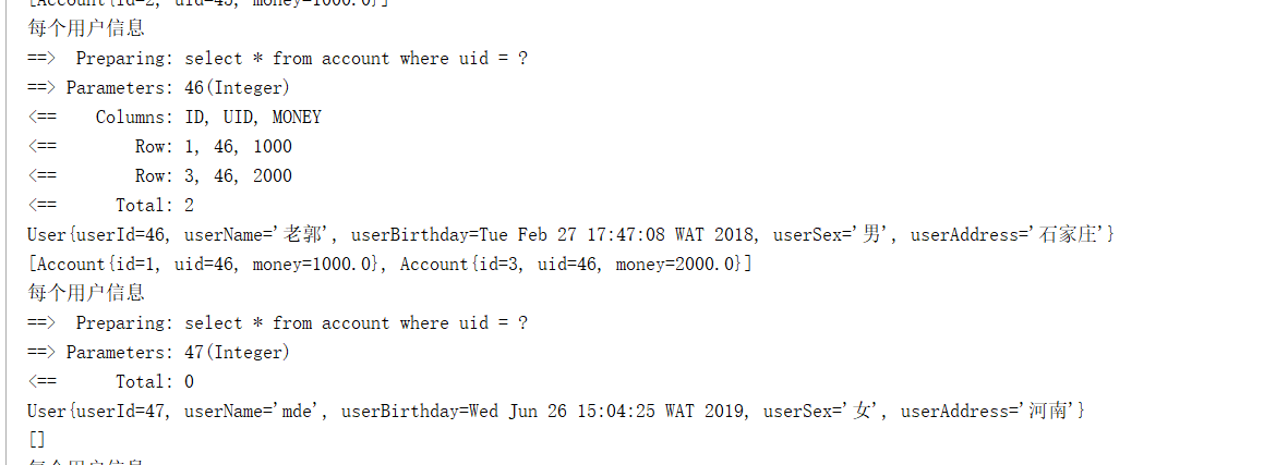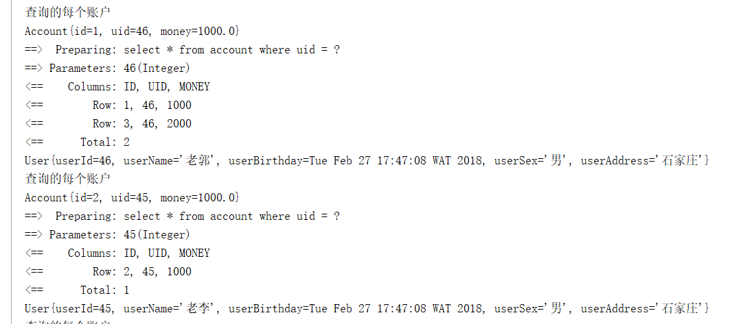 (2)查询所有账户信息同时查询出其所属的用户信息