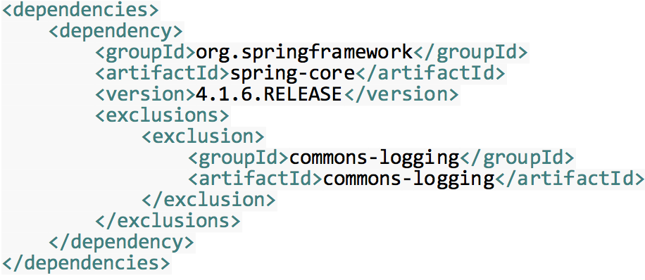因为spring-core依赖了commons-logging,而其他模块都依赖了spring-core,所以整个spring框架都依赖了commons-logging,如果有自己的日志实现如log4j,可以排除对commons-logging的依赖,没有日志实现而排除了commons-logging依赖,编译报错