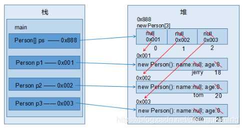 Person[] ps = new Person[3]; // 声明一个对象数组,里面有三个对象