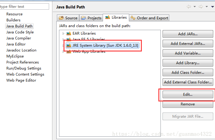 (2)点击上图中JRE System Library------------->点击Edit