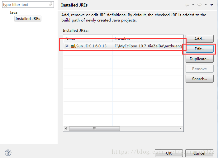 (4)出现如下界面,点击Edit,找到自己安装的java JDK,点击确定