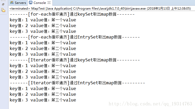 System.out.println("key值:"+key+" value值:"+map.get(key));
