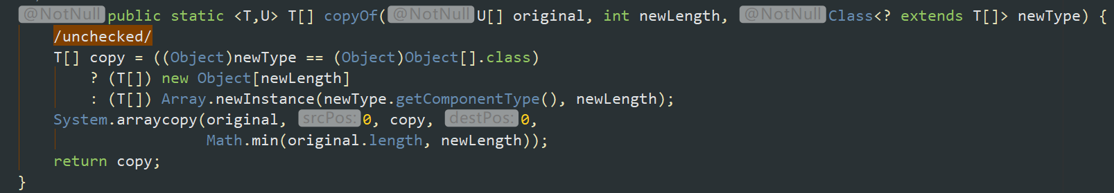 3,接着里面的if判断,判断elementData是否成功转换为数组,如果成功则调用Arrays.copyOf方法将元素值,数组大小,及数组类复制值到elementData数组中。