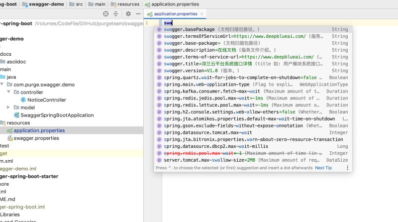 在自己项目模块的resources目录下 创建swagger.properties配置