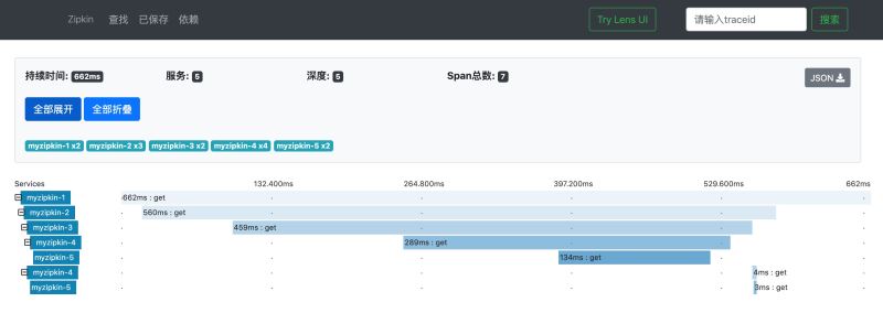在地址栏请求urlhttp://localhost:8081/zipkin/service1,然后访问http://localhost:9411/zipkin/