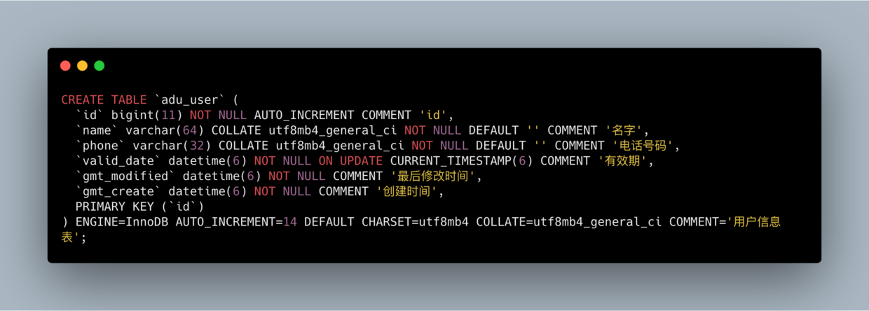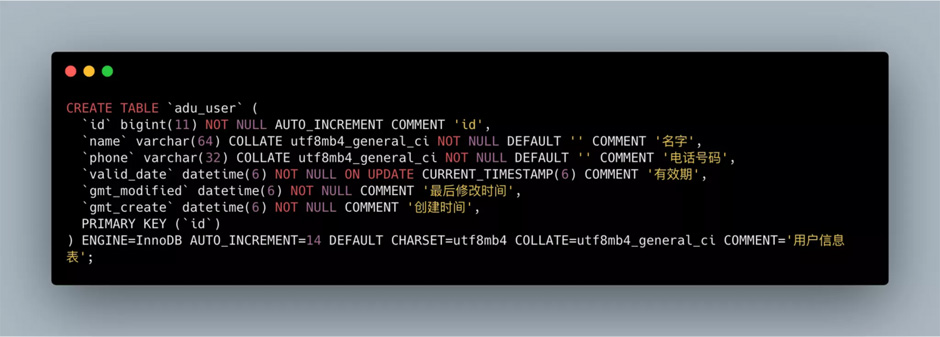 不过,这里有个小插曲,我在最开始设计表的时候,使用的SQL语句是下面这样的,