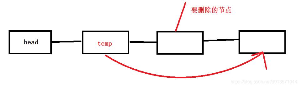 删除节点:如图所示,要删除某一节点,需要遍历整个链表,找到该节点对应的编号,再将该前一个节点的next指向要删除的节点的后面的一个节点,即(temp.next = temp.next.next)。由于被删除的节点没有被引用,将会被垃圾回收机制回收掉。