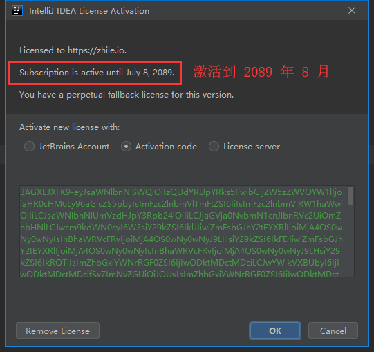 若你的 IDEA 已经使用了老的 License, 注意移除,否则会导致激活不成功。
