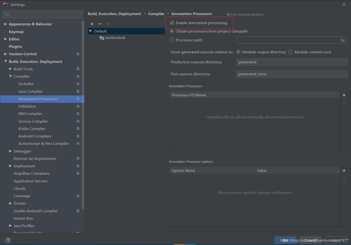3、设置Enable annotation processing