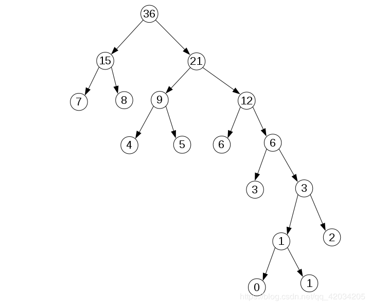 2.用统计结果构建哈夫曼树: