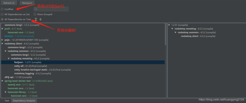 例如org.apache.rocketmq:rocketmq-common:jar:4.5.2:compile是你引用了这个: