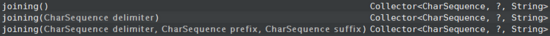 oining(CharSequence delimiter, CharSequence prefix, CharSequence suffix)方法,即分隔符为 delimiter,前缀为 prefix,后缀为 suffix(底层实现为 StringJoiner)。