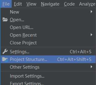 打开IDEA集成开发环境工具,点击:File--Project Structure,如下图