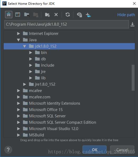 在打开的页面中,选择本地计算机中已经安装的JDK目录(选择bin目录的上一级即可),然后点击ok按钮,如下图