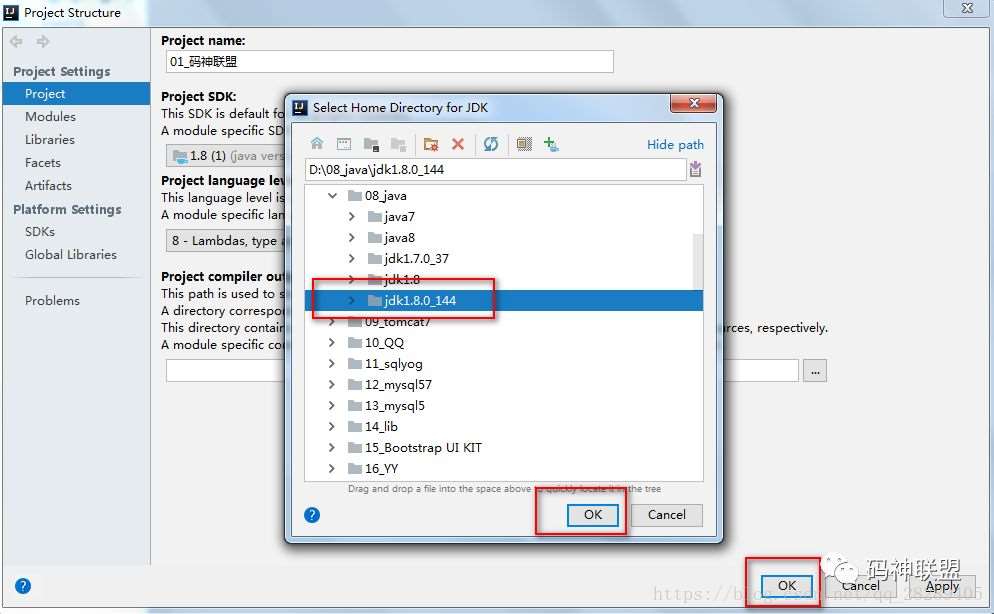 然后选择对应的JDK版本,点击OK按钮,如下图
