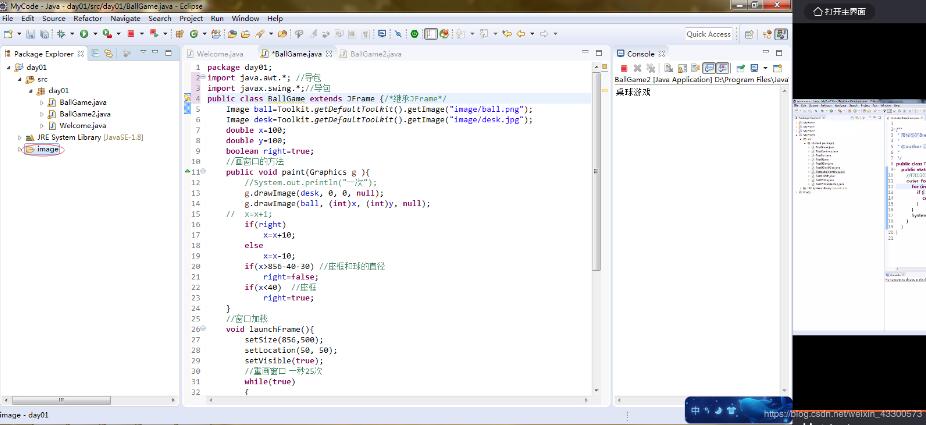 2在窗口内显示图片,先后顺序(桌面,球)否者会被覆盖掉。