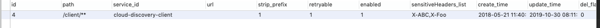2019-10-30 20:49:40.397 INFO 63449 --- [TaskScheduler-1] c.xian.cloud.router.DynamicRouteLocator : 添加数据库自定义的路由配置,path:/client/**,serviceId:cloud-discovery-client