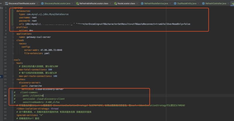 将配置文件client 消费者服务 路由配置注释掉。设置数据源。从数据库中读取