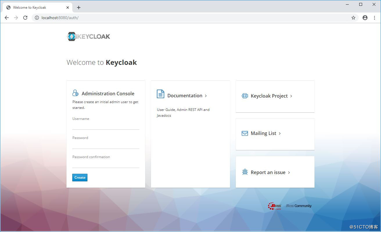 默认,本地网址为http://localhost:8080/auth ,首次登录时必须创建admin用户: