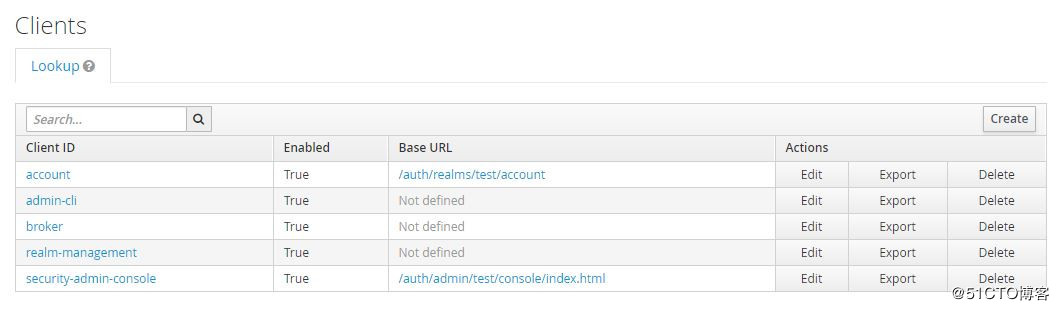 创建realm后自动创建以下client: