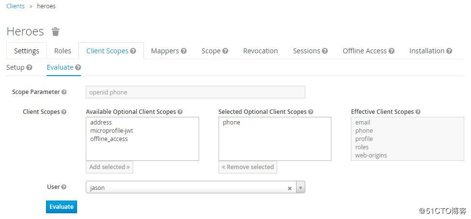 如果用户属性中定义了phoneNumber,在token中则会显示phone_number,可以在heroes client -> Client Scopes -> Evaluate查看效果: