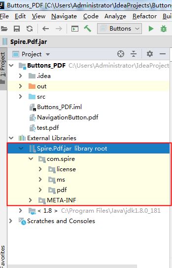 方法1:通过官网下载jar文件包。下载后,解压文件,并将lib文件夹下的Spire.Pdf.jar文件导入java程序。参考如下导入效果: