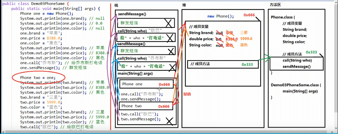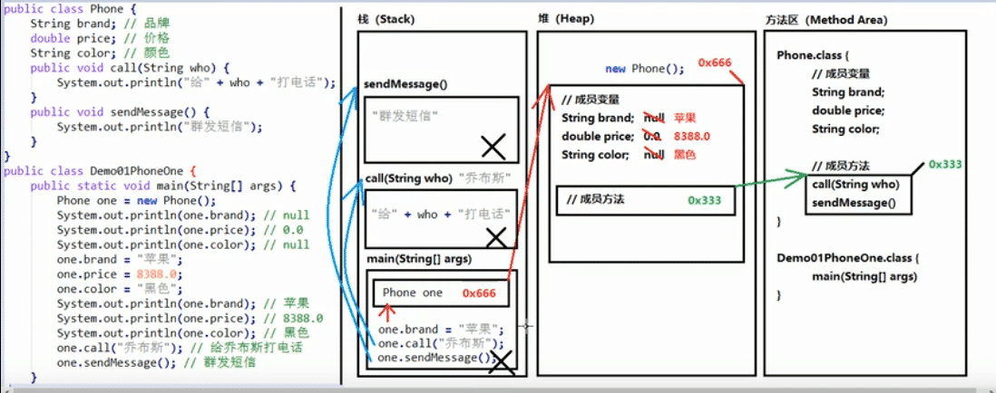 调用对象,内存分配情况