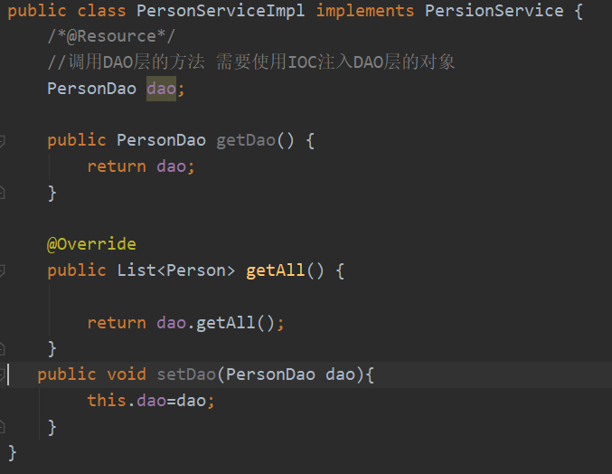 <property name="dao" ref="personDao"></property>