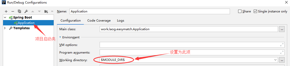 注:如果你所使用的是SpringBoot多模块项目,那么通过这个方法获取到的往往是父项目所在的地址,因此也会出现问题,解决这个问题的办法是配置当前项目启动类的工作环境是在具体的某个项目