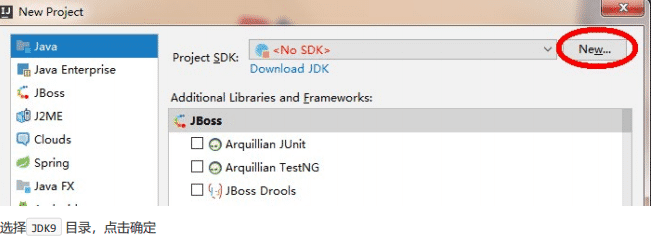 3. 点击 new 按钮,配置安装的 JDK9 版