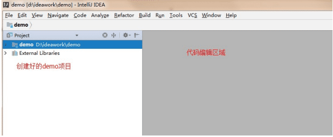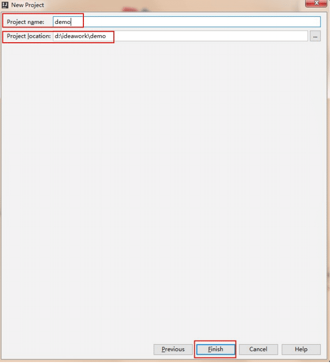5. 为工程起名字 demo ,并存储到 d:\ideawork\demo 目录下,如果d盘没有这个目录,会自动创建。