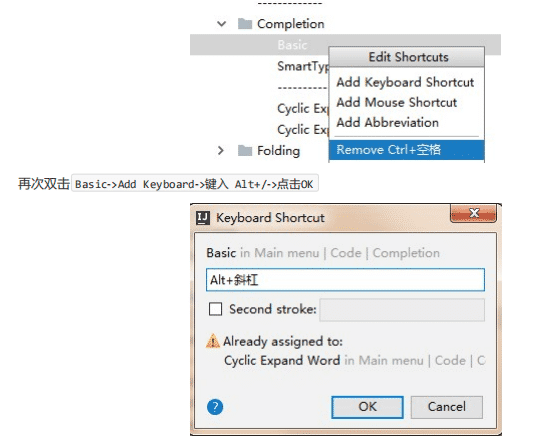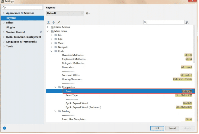 修改快捷键在IDEA工具中, Ctrl+空格 的快捷键,可以帮助我们补全代码,但是这个快捷键和Windows中的输入法切换快捷键冲突,需要修改IDEA中的快捷键。File->Settings->keymap->Main menu->code->Completion->Basic