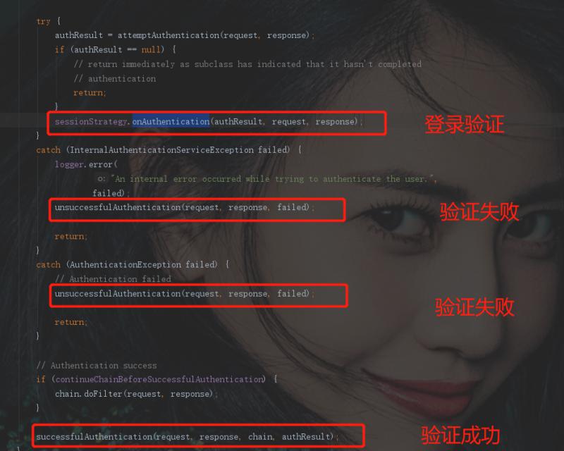 UsernamePasswordAuthenticationFilter继承自抽象类AbstractAuthenticationProcessingFilter,该抽象类定义了验证成功与验证失败的处理方法。