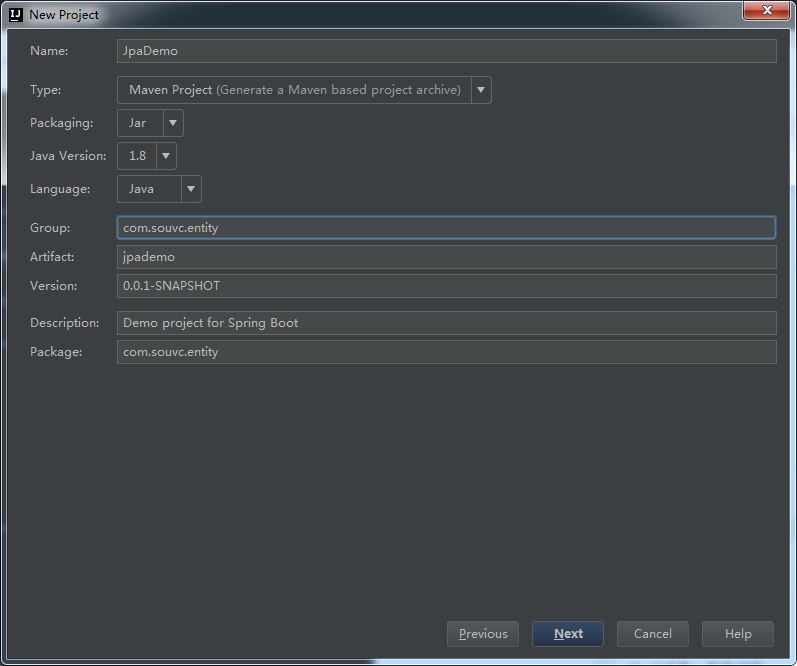 第一步:新建一个Maven项目。项目的名称为JpaDemo。