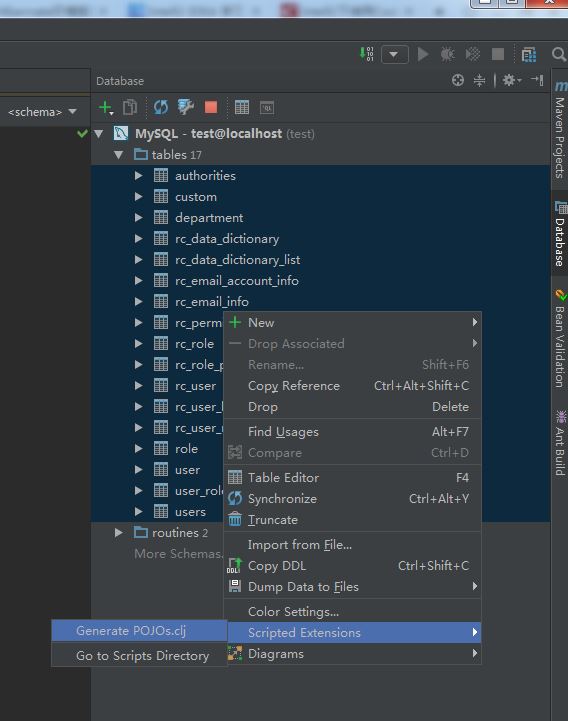 通过generate POJOs.clj即可导出实体类。