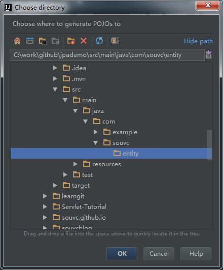 (2)生成实体类的位置