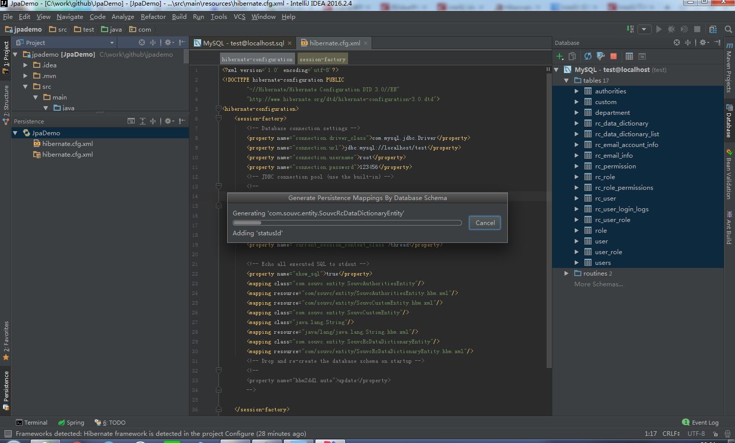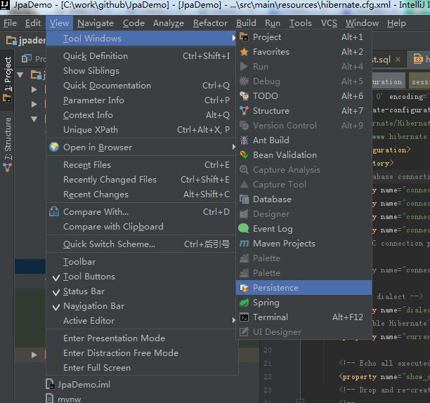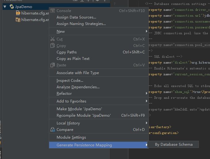 保存后。在主面板左侧有persistence,在hibernate图标上点击右键-Generate Persistence Mapping-By Database Scheme。