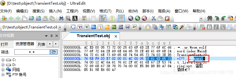 用二进制查看器打开这个文件也可以看到,数据中只有name1,没有name2。(请忽略乱码问题,这个不是重点哈。)