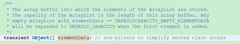 以ArrayList中的 transient Object[] elementData 为例,这个成员变量的注释为: